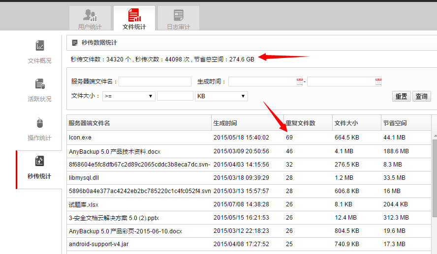 采用文件級(jí)重刪,實(shí)現(xiàn)數(shù)據(jù)上傳加速,大文件秒傳特性,同時(shí)節(jié)約本地存儲(chǔ)