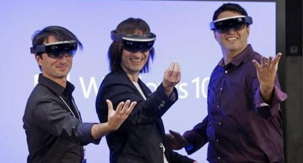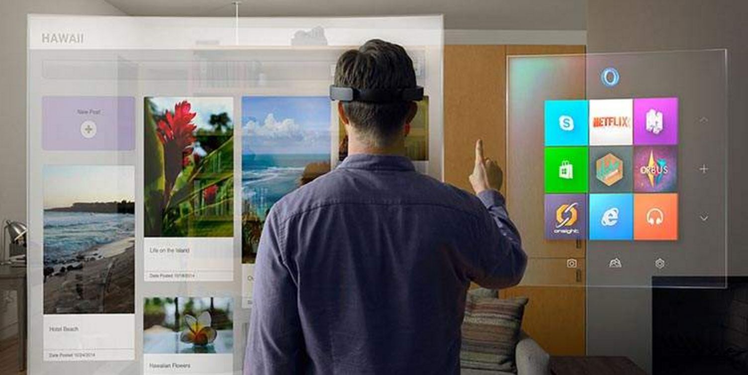 HoloLens是微軟公司開發(fā)的一種MR頭顯。眼鏡將會(huì)追蹤你的移動(dòng)和視線,進(jìn)而生成適當(dāng)?shù)奶摂M對(duì)象,通過(guò)光線投射到你的眼中。因?yàn)樵O(shè)備知道你的方位,你可以通過(guò)手勢(shì)——目前只支持半空中抬起和放下手指點(diǎn)擊——與虛擬3D對(duì)象交互。